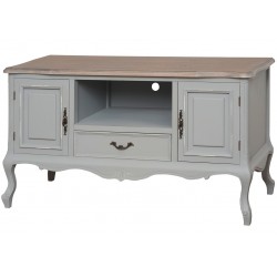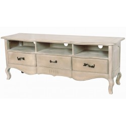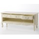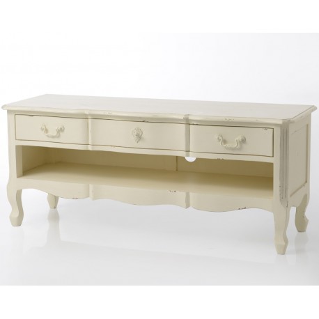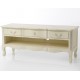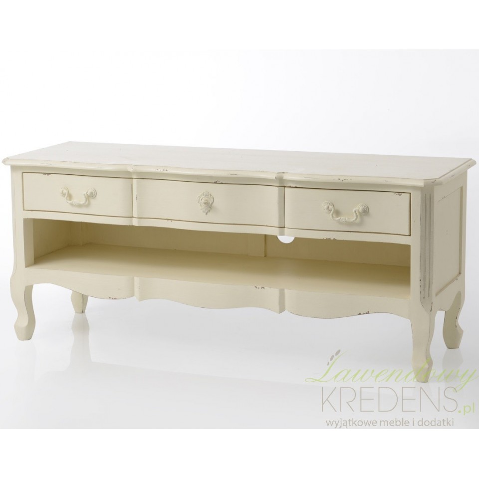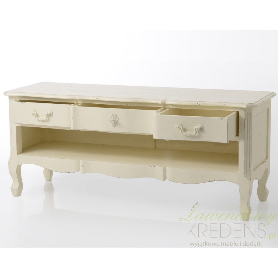 Niska komoda prowansalska, idealna jako komoda pod telewizor, służyć Ci będzie swoimi szuflaami zamykanymi na zdobne uchwyty, szerokim blatem, na którym postawisz swoj sprzęt oraz dodatkową półką na dole na gadźety czy czasopisma!