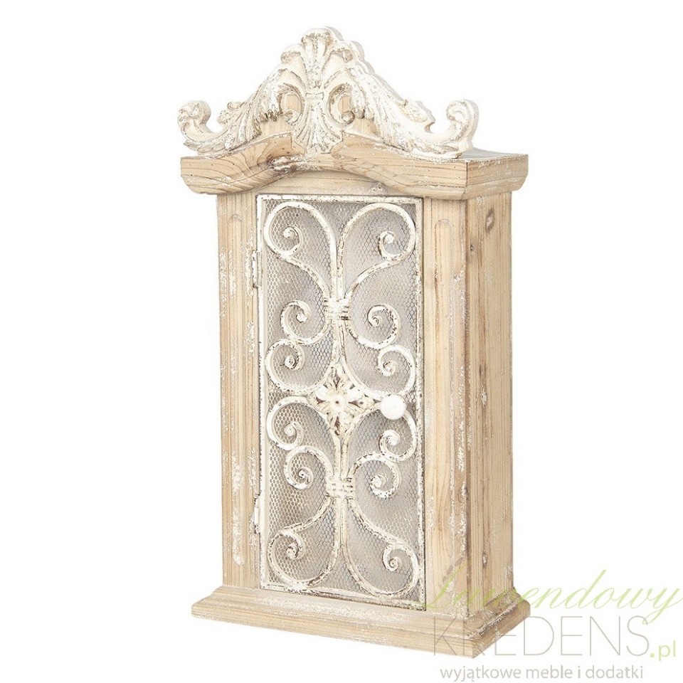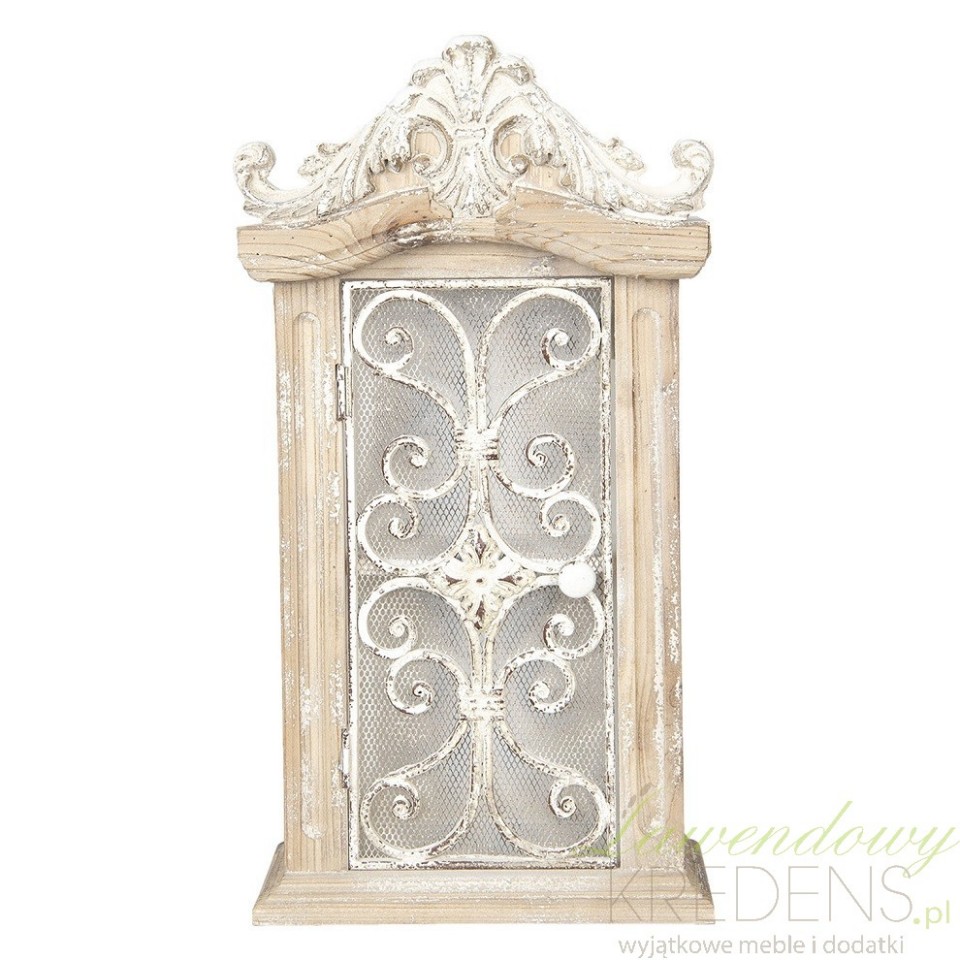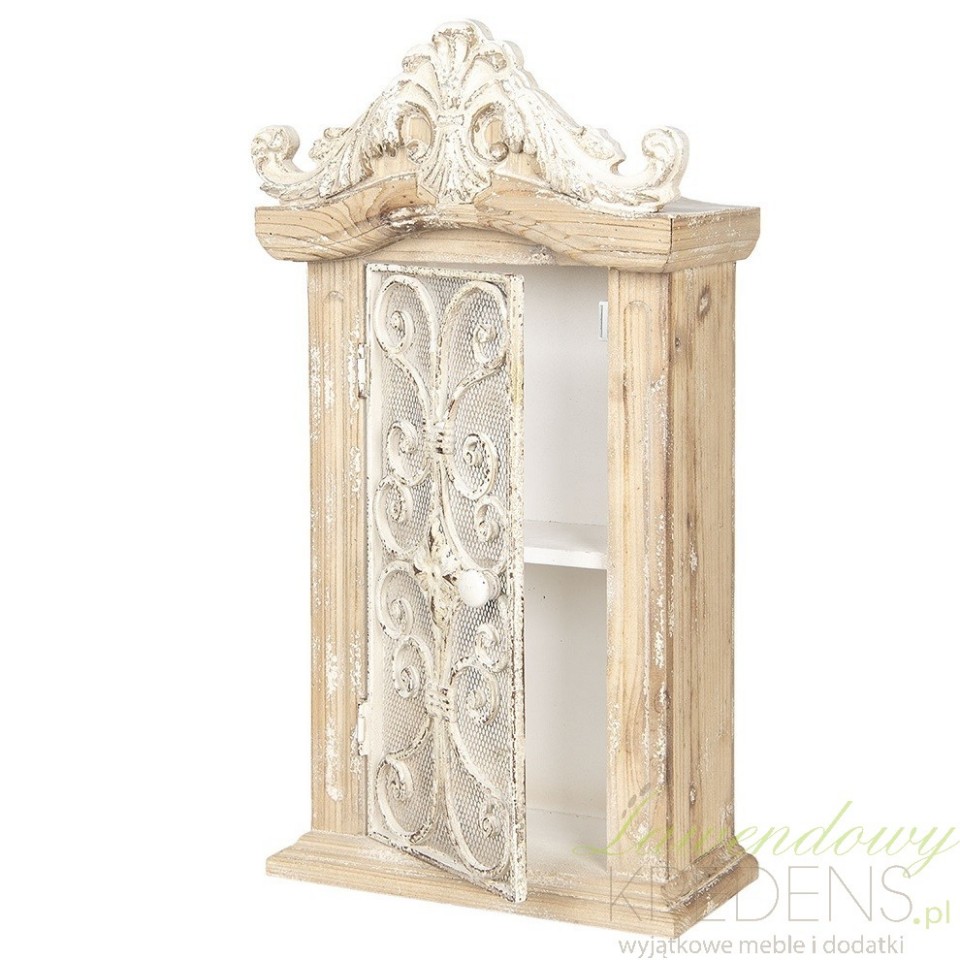 Prezentowana szafka ścienna z kolekcji mebli w stylu prowansalskim od Clayre&Eef wykonana została z drewna. To oryginalny mebel, kompaktowe rozwiązanie pozwalające jednocześnie upiększyć ścianę. Szafka posiada wewnątrz pojedynczą półkę. Prowansalski styl podkreślają zdobienia w formie postarzanych dekorów na szklanych drzwiach oraz nad szafką. Szafki ścienne i prowansalski styl? To połączenie potrafi zaskakiwać!