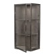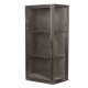 Jednodrzwiowa witrynka ścienna w stylu industrialnym z kolekcji postarzanych mebli w ciekawy sposób wyeksponuje kieliszki i porcelanę w jadalni, książki w gabinecie i ozdoby w salonie.