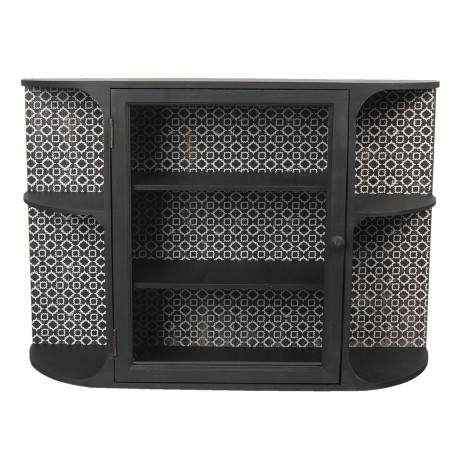 Szafka ścienna wykonana z drewna i wyposażona w szklane drzwi to mebel, którego podstawową zaletą jest ilość półek do zagospodarowania. Dzięki ciemnej kolorystyce witrynka ścienna z wzorkami wprowadzi klasyczny styl do domu, dzięki czemu będziesz mógł ją wszechstronnie wykorzystać w dowolnym pomieszczeniu. Witrynka z przeszkloną szafką z kolekcji mebli francuskich sygnowanych logo Clayre & Eef to wyjątkowej jakości mebel, będący inspiracją do urządzenia stylowego wnętrza. Postaw na jakość i niesztampowy design!