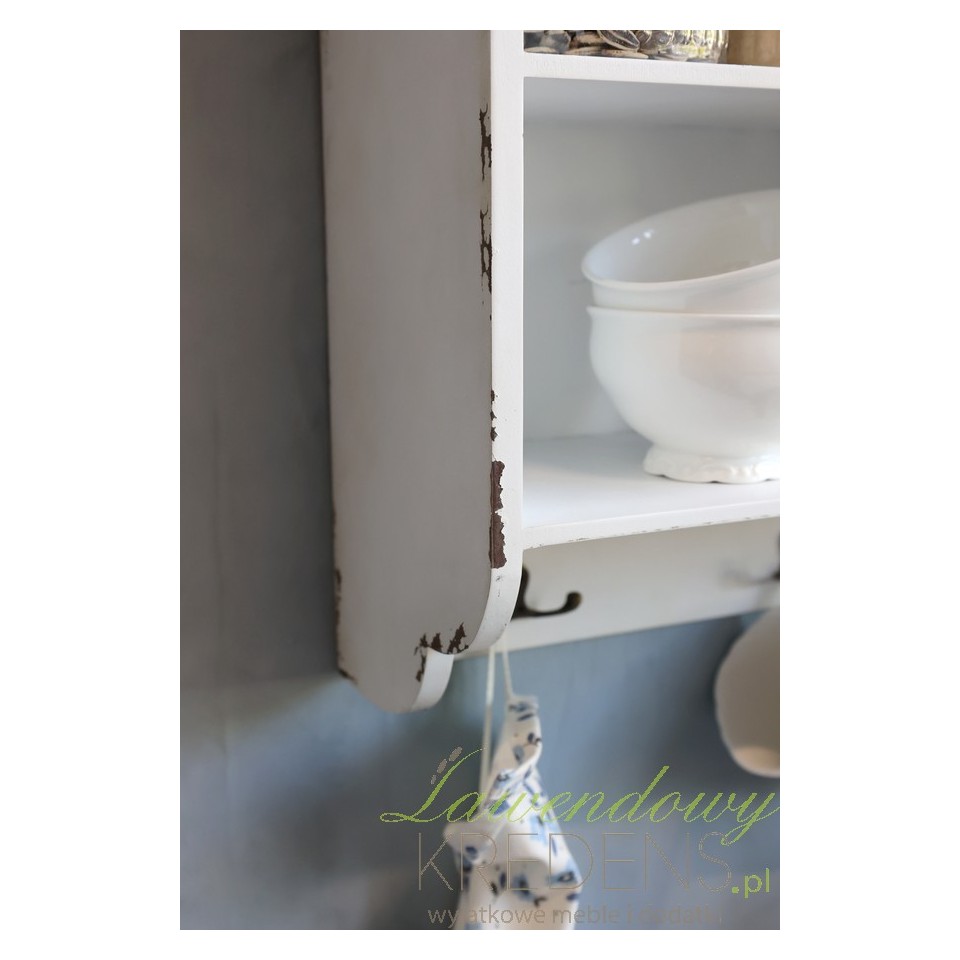 Konstrukcja szafki została tak zaprojektowana, aby maksymalnie wykorzystać przestrzeń ścienną i wprowadzić do wnętrza ciepły, przytulny klimat. Ornamenty na frontach drzwiczek nawiązują do klasycznych prowansalskich form, dzięki czemu szafka świetnie wpisze się w aranżacje vintage, retro oraz rustykalne. Idealnie łączy się z jasnymi, pastelowymi barwami oraz naturalnymi dodatkami jak wiklina, ceramika czy suszone kwiaty.