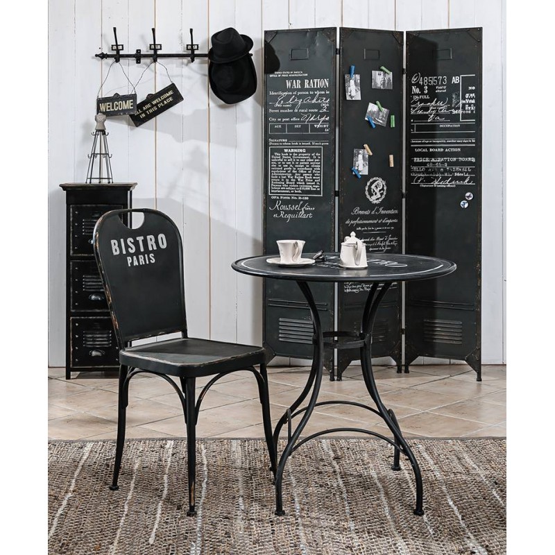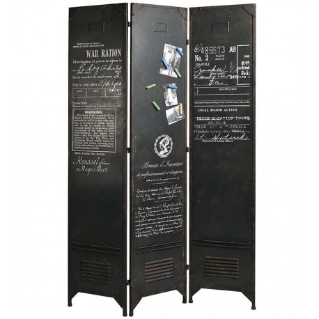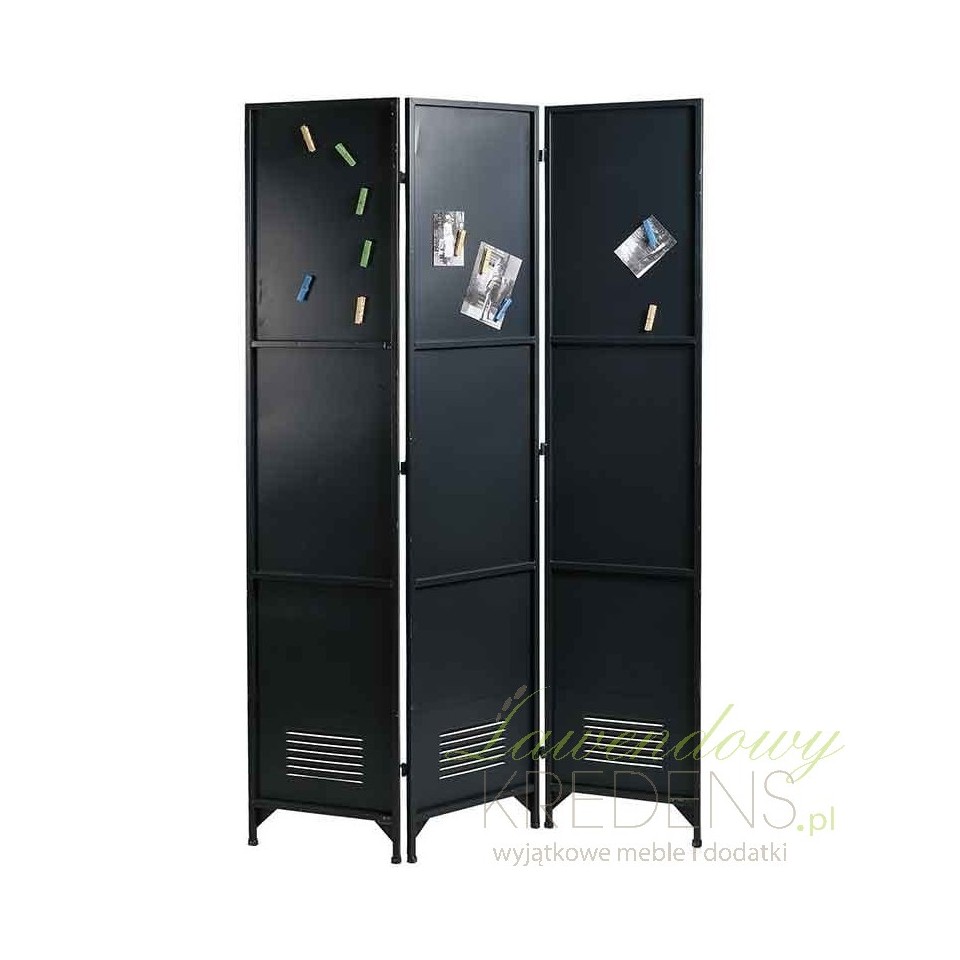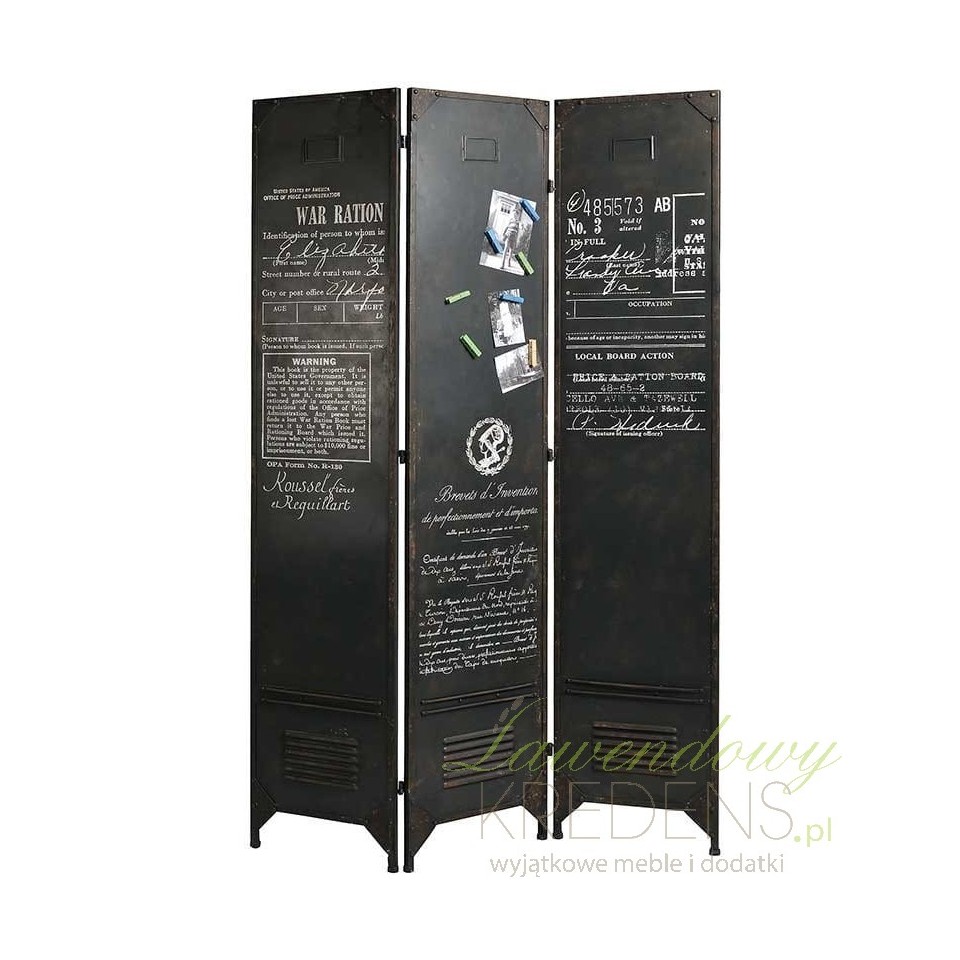 Parawan Loft to czarny, ciekawie wyglądający, metalowy parawan Belldeco ozdobiony napisami.
