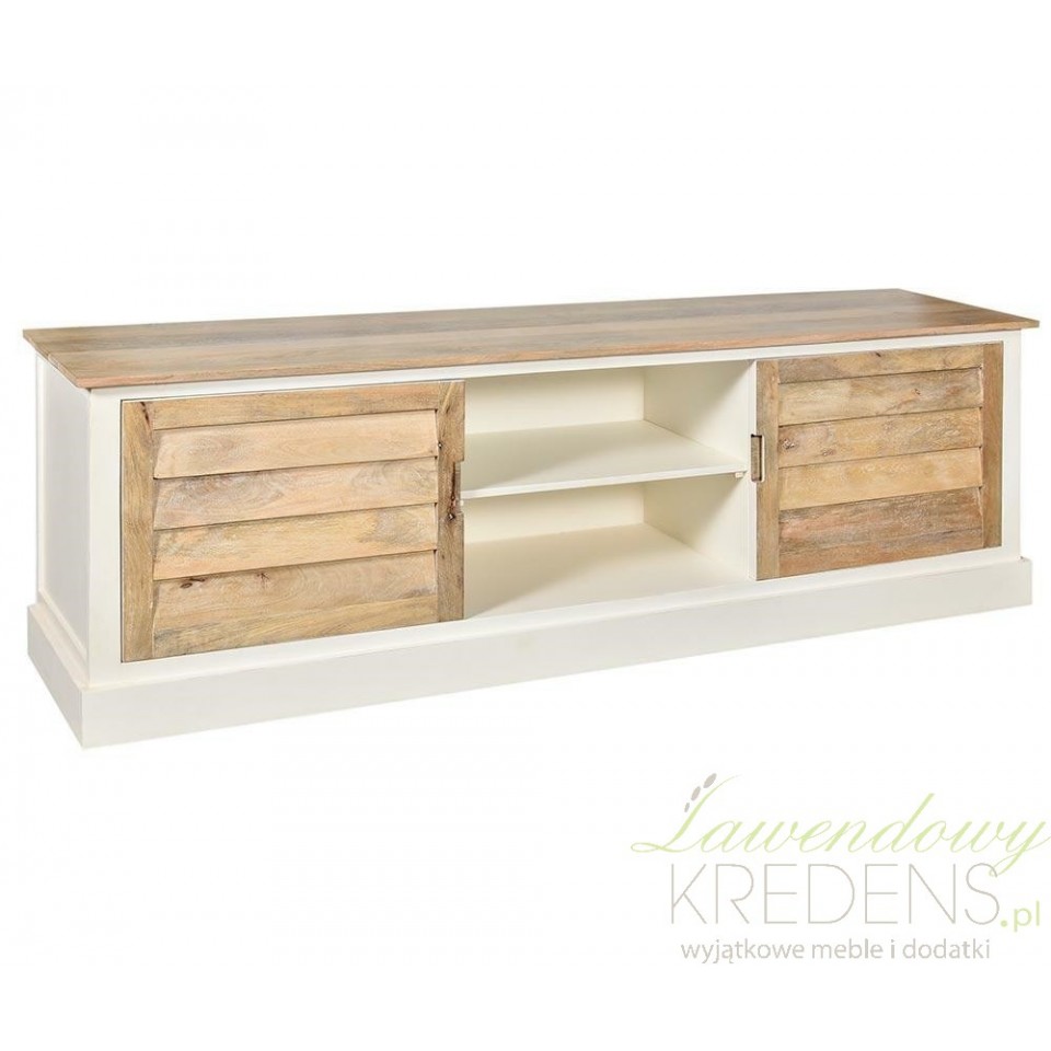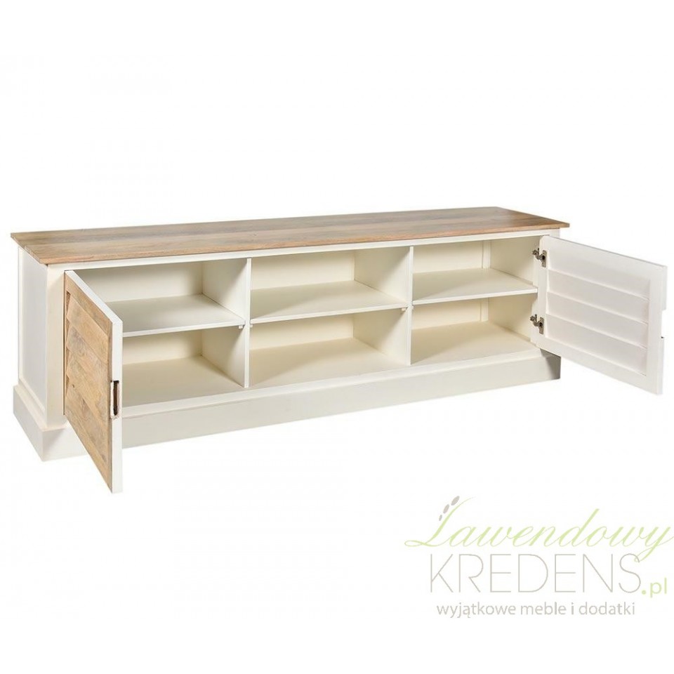 Kompaktowa szafka rtv Bristol Belldeco długa wykonana jest z drewna w kolorze białym i brązowym. Znakiem rozpoznawczym mebli z tej kolekcji jest widoczna struktura drewna. Szafki rtv prowansalskie to elementy wyposażenia wnętrza, które oferują mnóstwo inteligentnych i praktycznych opcji przechowywania. Zamów meble Belldeco jeżeli cenisz jakość i lubisz styl prowansalski. Gwarantujemy, że Twój salon zyska nowy wygląd, a Ty satysfakcję z pięknie urządzonego wnętrza.