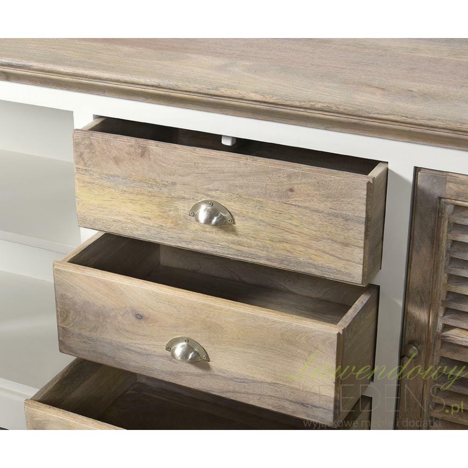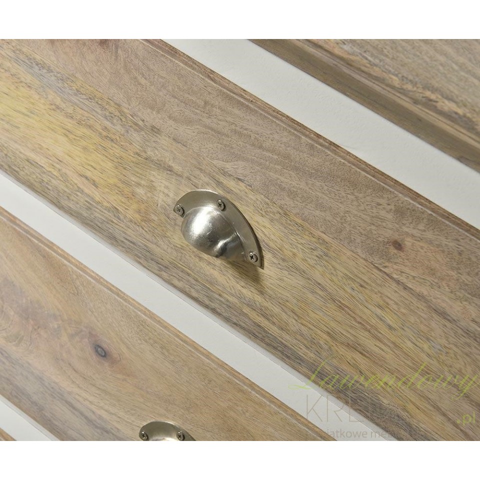 Komoda została wykonana z wysokiej jakości drewna mango i akacji, co zapewnia jej trwałość, solidność i elegancki wygląd na lata.