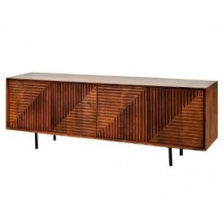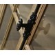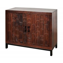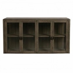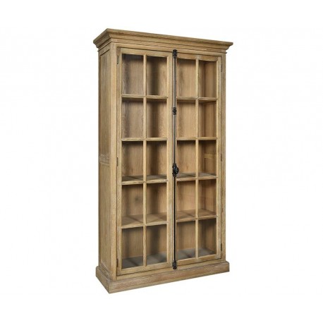 Dwuskrzydłowa biblioteka firmy Belldeco wykonana z drewna mangowego. Jej drzwi są przeszklone i przedzielone drewnianymi szprosami. Zamykana na metalowy, półobrotowy mechanizm.