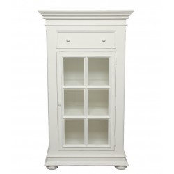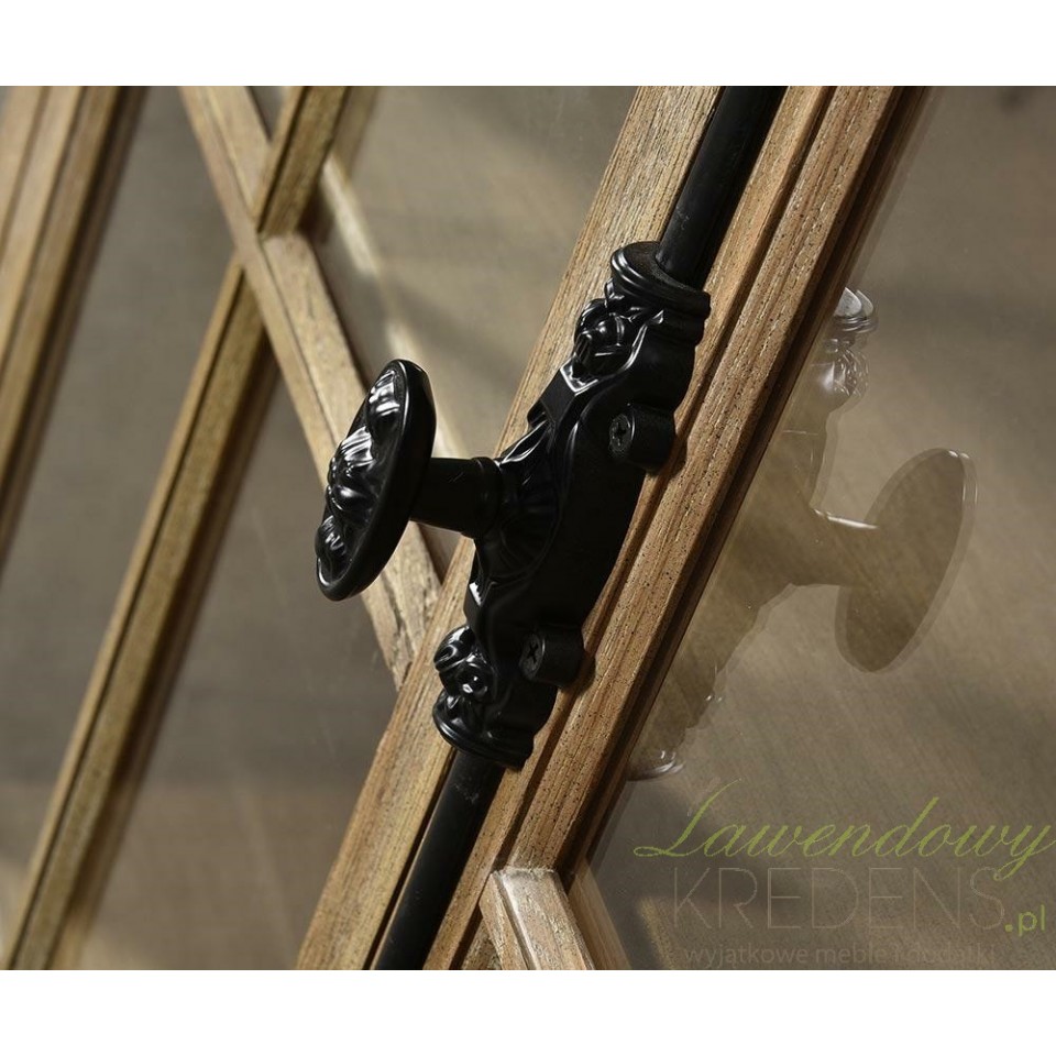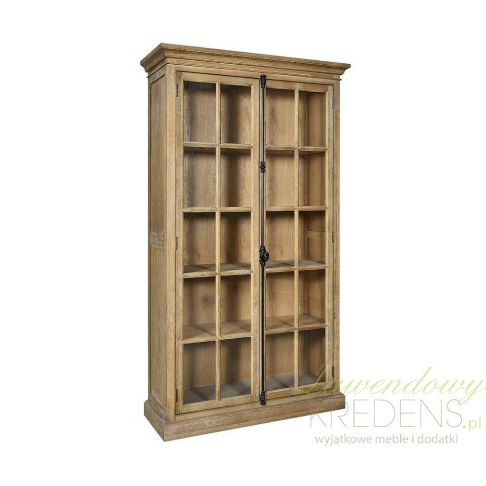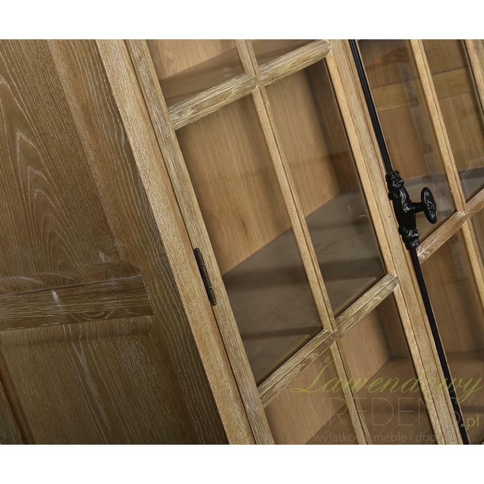 Drzwi biblioteki są przeszklone i podzielone na dziesięć symetrycznych pól, tworząc eleganckie „okienka”, które subtelnie eksponują zawartość mebla. Szprosowe podziały oraz metalowa, półobrotowa klameczka dodają jej nie tylko funkcjonalności, ale i wyjątkowego stylu. Dzięki licznych półkom wnętrze biblioteki jest niezwykle pojemne – bez trudu pomieści kolekcję książek, rodzinne pamiątki, porcelanę czy dekoracje. Mebel doskonale sprawdzi się zarówno w salonie, jak i w domowym gabinecie, jadalni czy bibliotece, stając się nie tylko miejscem przechowywania, ale też wyrafinowanym elementem aranżacji.