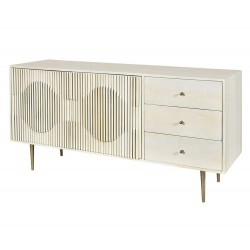 Do produkcji wykorzystano lite drewno mangowe, które cenione jest za trwałość i piękną strukturę. Naturalne usłojenie drewna, podkreślone szczotkowaniem, nadaje meblowi unikalny wygląd i rustykalny urok. Delikatne bielenie sprawia natomiast, że biblioteka harmonijnie wpisuje się w różnorodne aranżacje – od klasycznych i prowansalskich po skandynawskie, rustykalne, japandi czy nowoczesne wnętrza w stylu modern farmhouse. Jej klasyczna forma inspirowana jest włoskim stylem toskańskim, co nadaje całości subtelnej elegancji i ponadczasowego wdzięku.