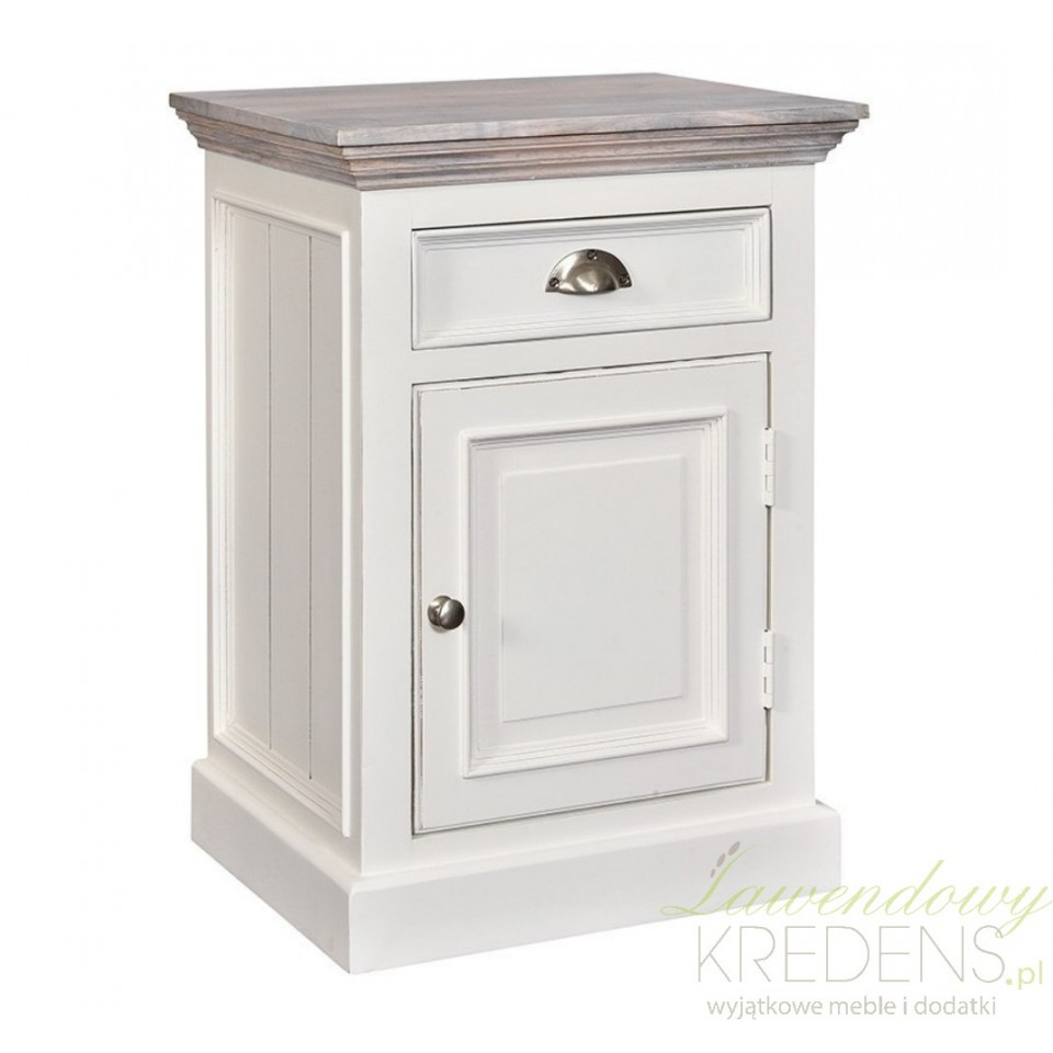 Piękna szafka nocna marki Belldeco to kwintesencja dobrego gustu i doskonałego połączenia materiałów i kolorów. Biała obudowa nonszalacko kontrastuje z naturalnym kolorem blatu, wszystko dopełnione akcentem metalowych uchwytów. Szafka Belldeco posiada jedną zamykaną półkę i pojemną szufladę.
