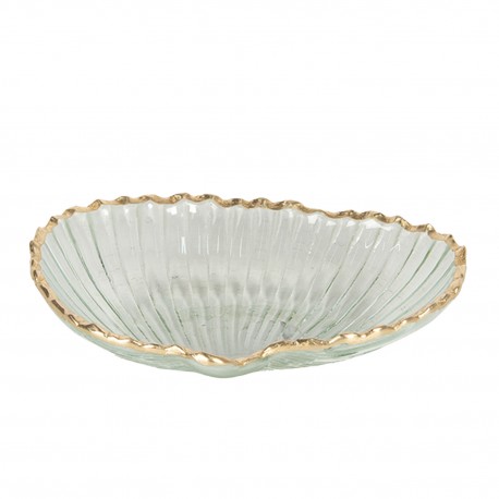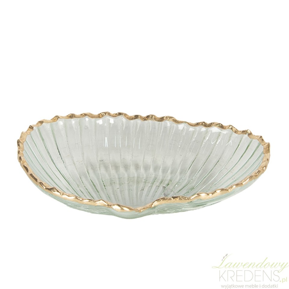 Poszukujesz oryginalnych naczyń, które urozmaicą Twoją zastawę stołową? Szklana miska muszla o prążkowanej strukturze to dodatek, który polecamy ze względu na niepowtarzalny wygląd. Miska w kształcie muszli będzie odpowiednia na owoce, przystawki i sałatki. Dzięki pozłacanej krawędzi z pewnością wyróżni się pośród innych, szklanych naczyń.