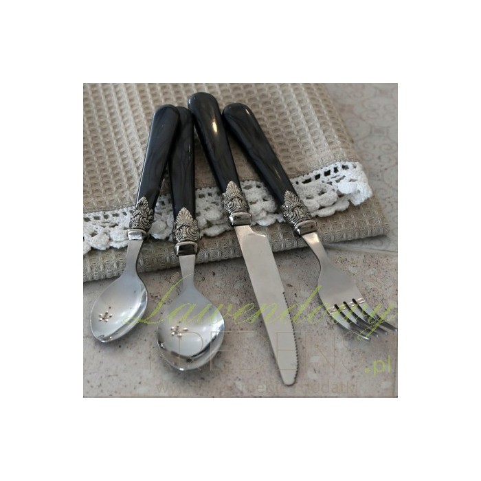 Chic Antique słynie z niebanalnych artykułów i tutaj także nas nie zawodzi, ponieważ proponuje nam sztućce w stylu prowansalskim, które posiadają metalowe ozdobniki oraz czarny kolor trzonów. Sztućce prowansalskie to przedmioty, które zabłysną na stole.
