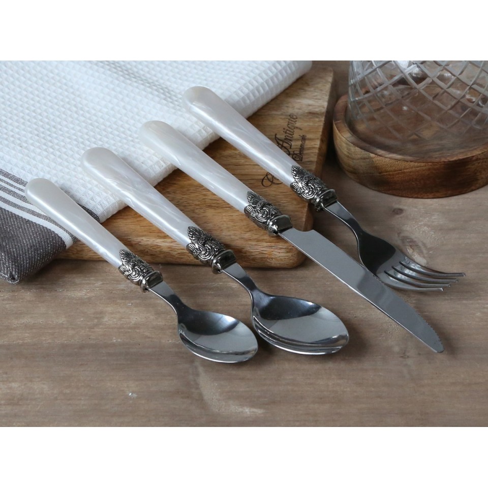 Sztućce w stylu prowansalskim to doskonały styl i przepiękny wygląd. Sztućce prowansalskie firmy Chic Antique mają białe, błyszczące rączki i wspaniałą dekorację w formie cudownych, metalowych ozdobników. Idealnie sprawdzą się na wszelkich rodzinnych uroczystościach i na co dzień.