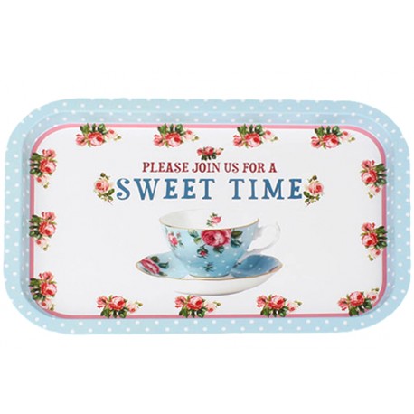 Dodatki do kuchni, a wśród nich taca retro sprawią że twoja kuchnia będzie funkcjonować bez zarzutu a przy tym stanie się przytulna i kolorowa. Taca w stylu retro ma prostokątny kształt i wykonana jest z metal. Jest przyjemna i bardzo kolorowa a na środku znajduje się filiżanka z ozdobną różyczką i angielski napis.