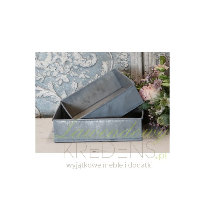 Przywołująca na myśl starą, dobrą Prowansję, kwadratowy, metalowy pojemnik, który służyć może także jako taca!