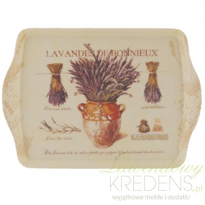 Ozdobna, prostokątna taca prowansalska z lawendą i francuskimi napisami!