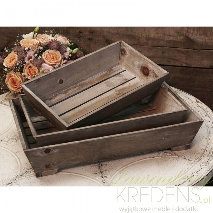 Drewniana taca w trzech rozmiarach o wysokiej krawędzi, delikatnie rozszerzanej ku górze. Doskonale sprawdzą się jako tace dekoracyjne lub jako piękne tace do podawania śniadań do łóżka. Marka Chic Antique dba o to, aby każdy szczegół zachwycał Cię, dlatego tace są w kolorach naturalnego drewna z subtelnymi pobieleniami powierzchni.
