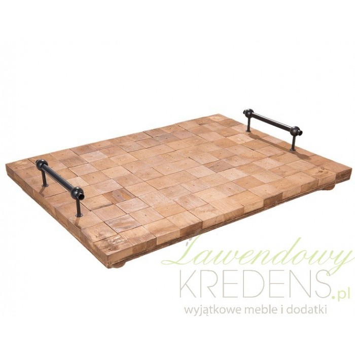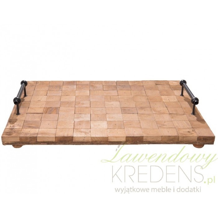 Drewniana taca z metalowymi uchwytami to solidna taca przeznaczona do użytkowania w kuchni. Wykonana została z małych, drewnianych kwadracików połączonych w prostokątną całość o długości 48cm. Zgrabna, w loftowym stylu i w brązowym kolorze będzie niezwykle pomocna w każdej kuchni. Zainwestuj w dużą tace, która sprawdzi się na każdym przyjęciu i nie Tylko!