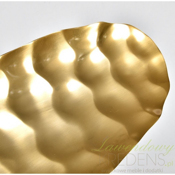 Firma Belldeco wprowadziła serię Golden Line, do której należy patera dostępna w naszym sklepie. Podłużna patera belldeco z wgniecieniami, wykonana jest z aluminium i postarzanego mosiądzu. Idealnie sprawdzi się na owoce oraz słodkości. Patera jest również pięknym i stylowym dodatkiem dekoracyjnym. Elegancki design produktu nada industrialny charakter wnętrzu!
