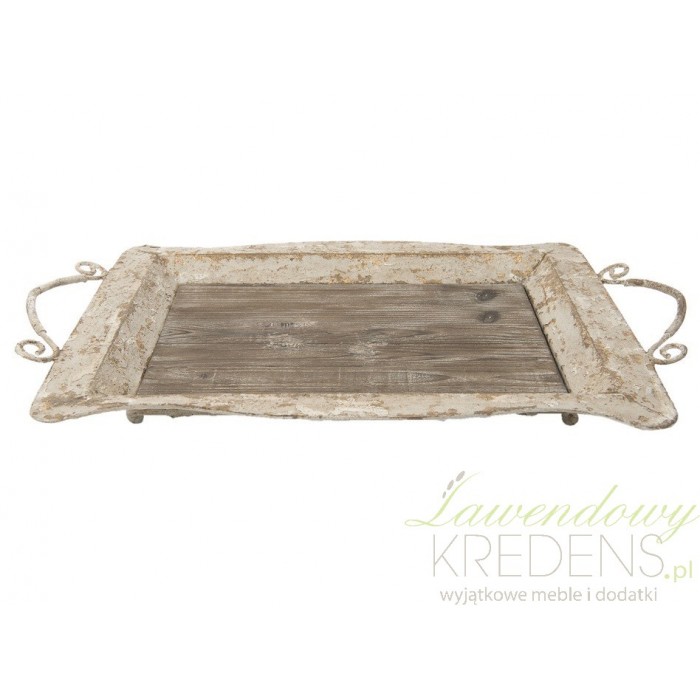 Taca shabby chic z dwoma uchwytami po bokach. Postarzana taca została wykonana z drewna i metalu, dzięki czemu ma niepowtarzalny i oryginalny wygląd. Tace shabby chic są unikatowe, przez co można w ciekawy sposób zaprezentować danie oraz inne przekąski. Ta praktyczna i nietuzinkowa taca przyda się każdemu w domu. Polecamy!