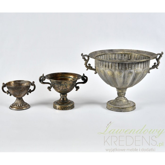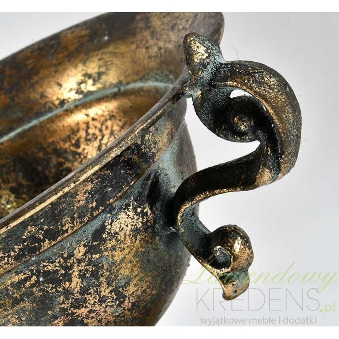 Kapitalna misa Belldeco na nóżce z dekoracyjnymi uchwytami zamontowanymi po bokach naczynia wykonana została z metalu.