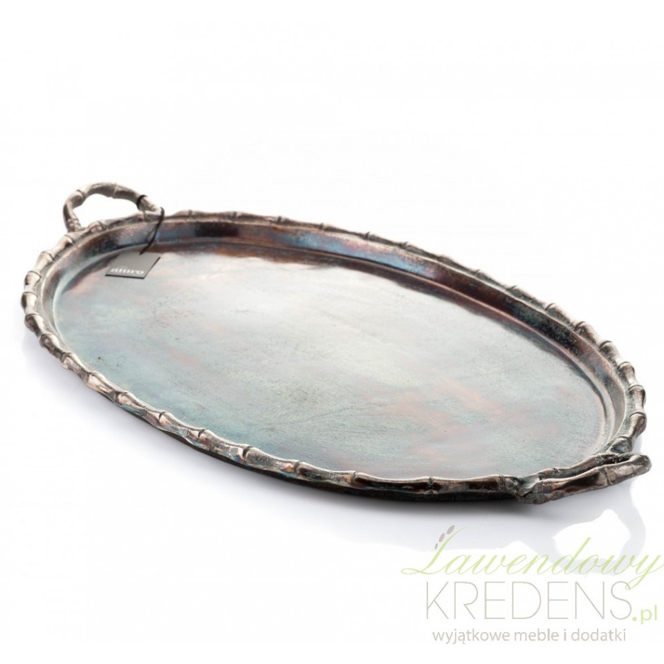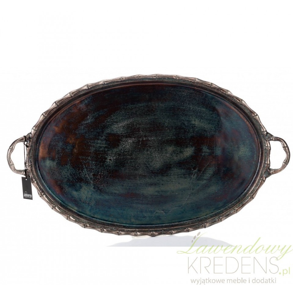 Każda okazja jest dobra by ustawić na stole tacę od Aluro. Metalowa taca ma owalny kształt, dwa uchwyty i ozdobne zgrubienia wokół rantu. Wykorzystując tę srebrną tacę możesz liczyć nie tylko na zachwyt ukochanego ale również niespodziewanych gości. Metalowe tace jakie Ci oferujemy są dostępne również w innych kształtach i rozmiarach.