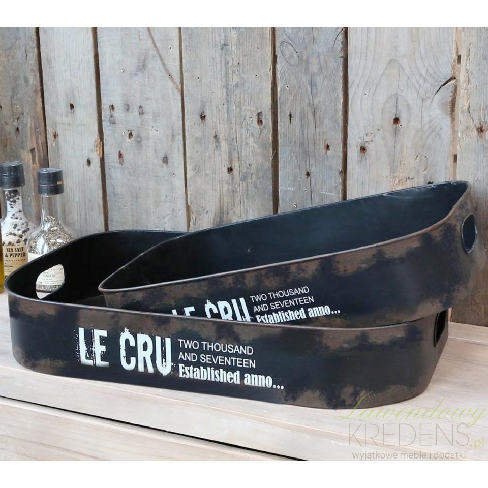 Duże tace w stylu industrialnym mają czarny kolor i są celowo postarzane, dlatego genialnie nawiązują do epoki industrialnej.