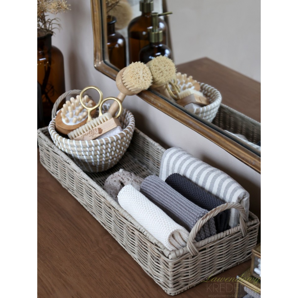 Wykonana z naturalnego rattanu i starannie zaprojektowana przez renomowaną duńską markę Chic Antique, ta taca łączy w sobie wyrafinowaną elegancję i rustykalny urok, który dodaje niepowtarzalnego charakteru twojemu wnętrzu.