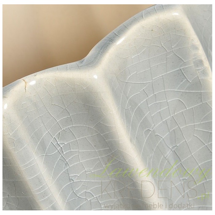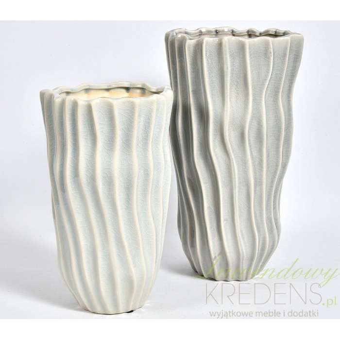 Wazon belldeco wykonany z ceramiki o szarym kolorze, posiada ozdobny wzór lekko falowanych linii. Dodatki prowansalskie z naszej oferty to między innymi osłonki w stylu prowansalskim zegary ścienne czy też wiele innych produktów.