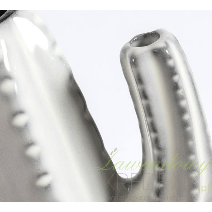 Wazon kaktus od Belldeco doda charakteru każdemu bukietowi zielonych i kolorowych kwiatów. Wazon wykonany jest z wysokiej jakości ceramiki, w kolorze szarym i ma gładką powierzchnię urozmaiconą dekoracyjnymi kolcami. Dzięki ozdobnym kolcom wazon przypomina kształtem prawdziwego kaktusa. Zamocowane po bokach dwa odnóża czynią go niezwykle oryginalnym.