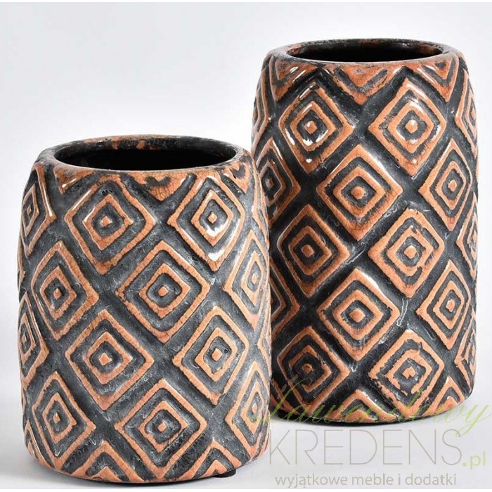 Wazon Belldeco w kształcie tuby ze spodem jest wysoki na 15cm i ma oryginalny wzór z rombami. Jego ciemny kolor genialnie łączy się z rdzawym wzorem. Ceramiczny wazon jest genialny na świeże i suszone kwiaty. Nic tak nie odmieni Twojego domu jak wazony Belldeco i stylowa aranżacja kwiatową!