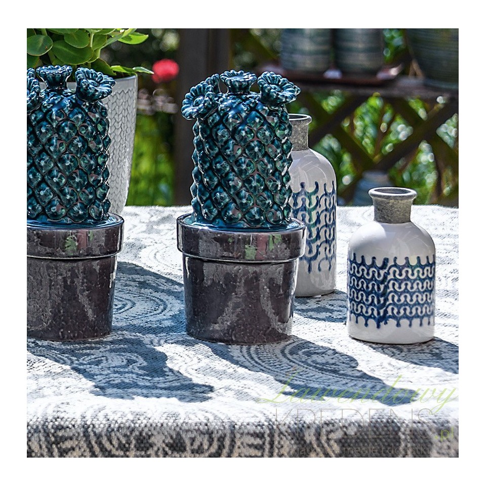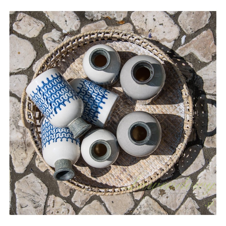 Firma Belldeco tworzy niesamowite i niepowtarzalne dodatki do wnętrz. Wazonik Belldeco wykonany jest z dobrej jakości ceramiki i ma kremowy kolor. Na środku znajduje się ciekawy, niebieski wzór, przypominający fale. Wazoniki Belldeco to wspaniała dekoracja salonu czy łazienki.