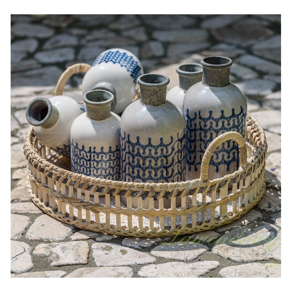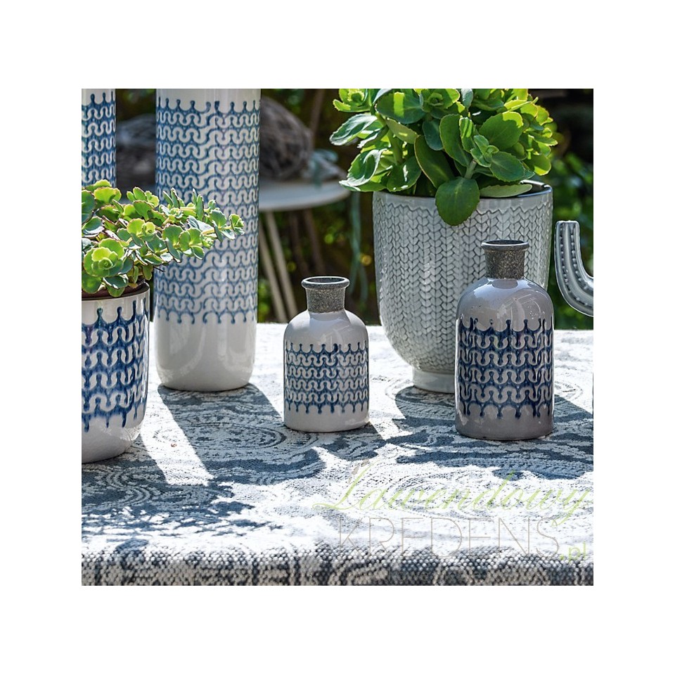 Kremowy wazonik Belldeco z intrygującym niebieskim wzorem!