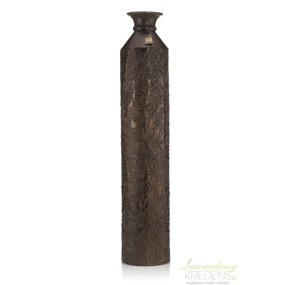 Wazon metalowy Aluro Rella brązowy w kwiatowy relief