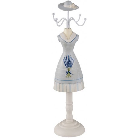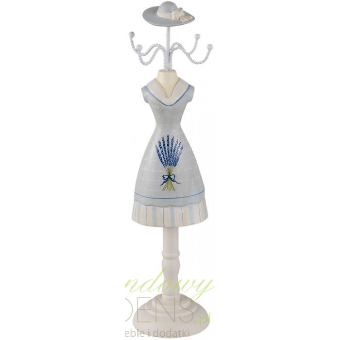 Stojak na biżuterię mający korpus o kształcie sukienki to tak na prawdę piękny manekin na biżuterię. Dodatki prowansalskie z motywem fioletowej lawendy to prawdziwa dekoracja podkreślająca klimat wnętrza.