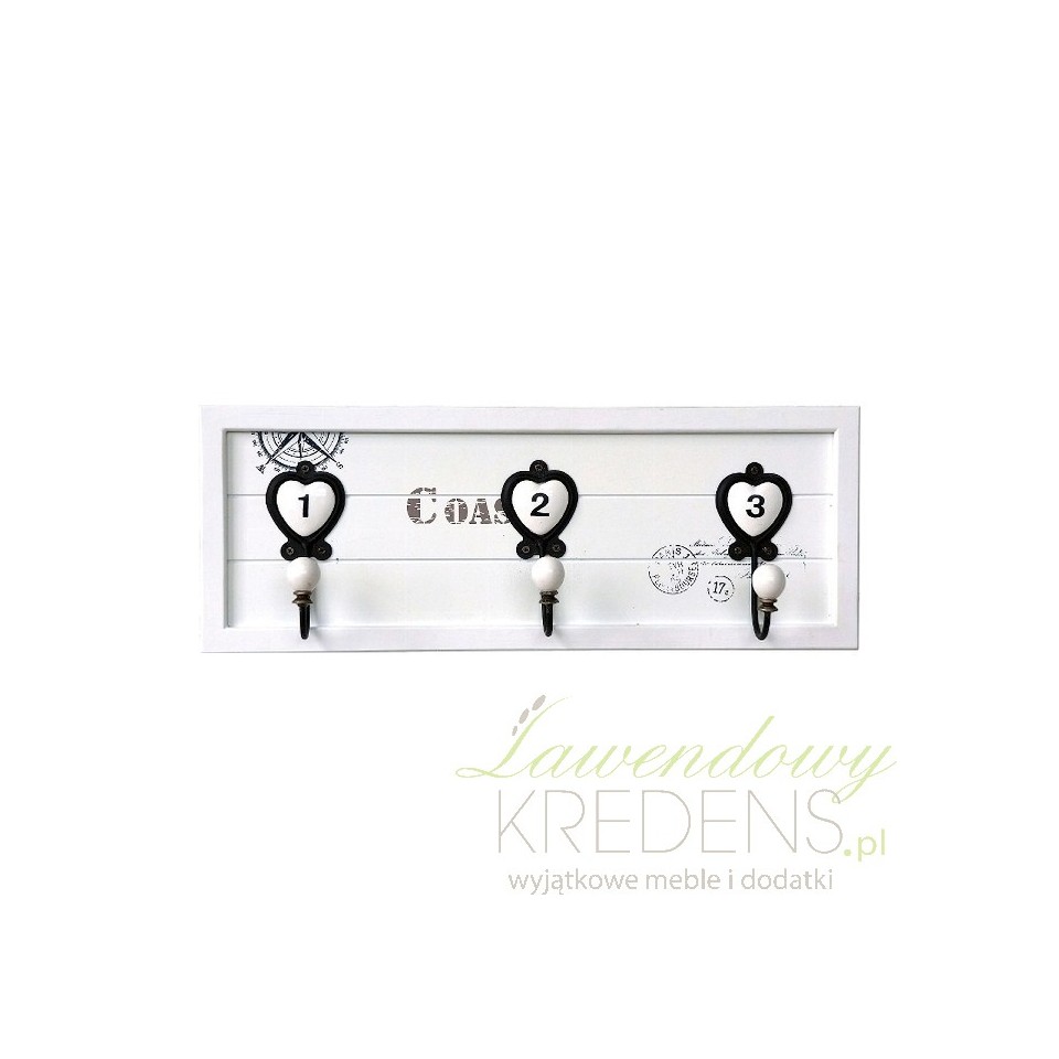 Dodatki w stylu marynistycznym to akcesoria przepełnione jasnymi kolorami. Wieszaki w stylu marynistycznym to trzy wieszaki ścienne zamocowane do prostokątnej deski. Na białym tle znajdują się czarne pieczęcie oraz napisy. Stylowe wieszaki ścienne możesz wykorzystać w przedpokoju lub w kuchni - sam zdecyduj!