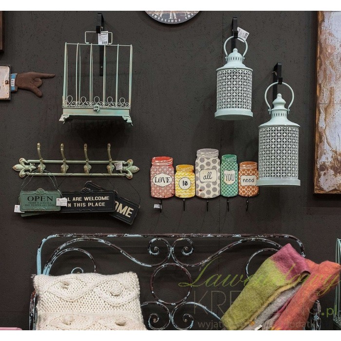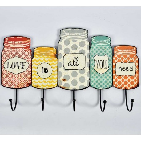 Wieszaki ścienne ze słoikami z powodzeniem sprawdzą się w kuchni w stylu retro lub w spiżarni. Każdy z słoików tworzących wieszak Belldeco posiada różny wzór i kolor ale też praktyczny haczyk u dołu. Napisy na słoikach łączą się w angielska sentencje o miłości. Wieszaki w stylu retro nie tylko zdobią wnętrze ale dodają mu dodatkowe miejsce do wieszania.