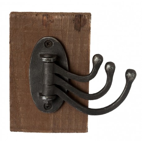 Wieszaki ścienne to różne style wykonania i różnorodne kształty. Wieszak w stylu rustykalnym ma czarny kolor i osadzony jest na brązowej desce. Wieszak potrójny firmy Clayre & Eef wykonany jest z metal i drewna. Każdy z wieszaków obraca się w różną stronę i stanowi oryginalną dekorację mieszkania.