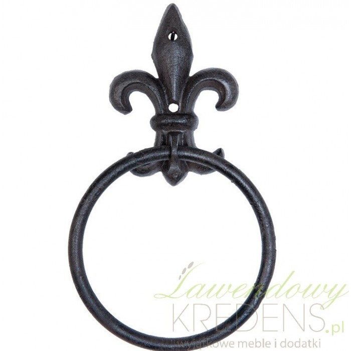 Czarny, okrągły wieszak na ręczniki firmy Clayre & Eef z oryginalną i niebanalną lilijką!