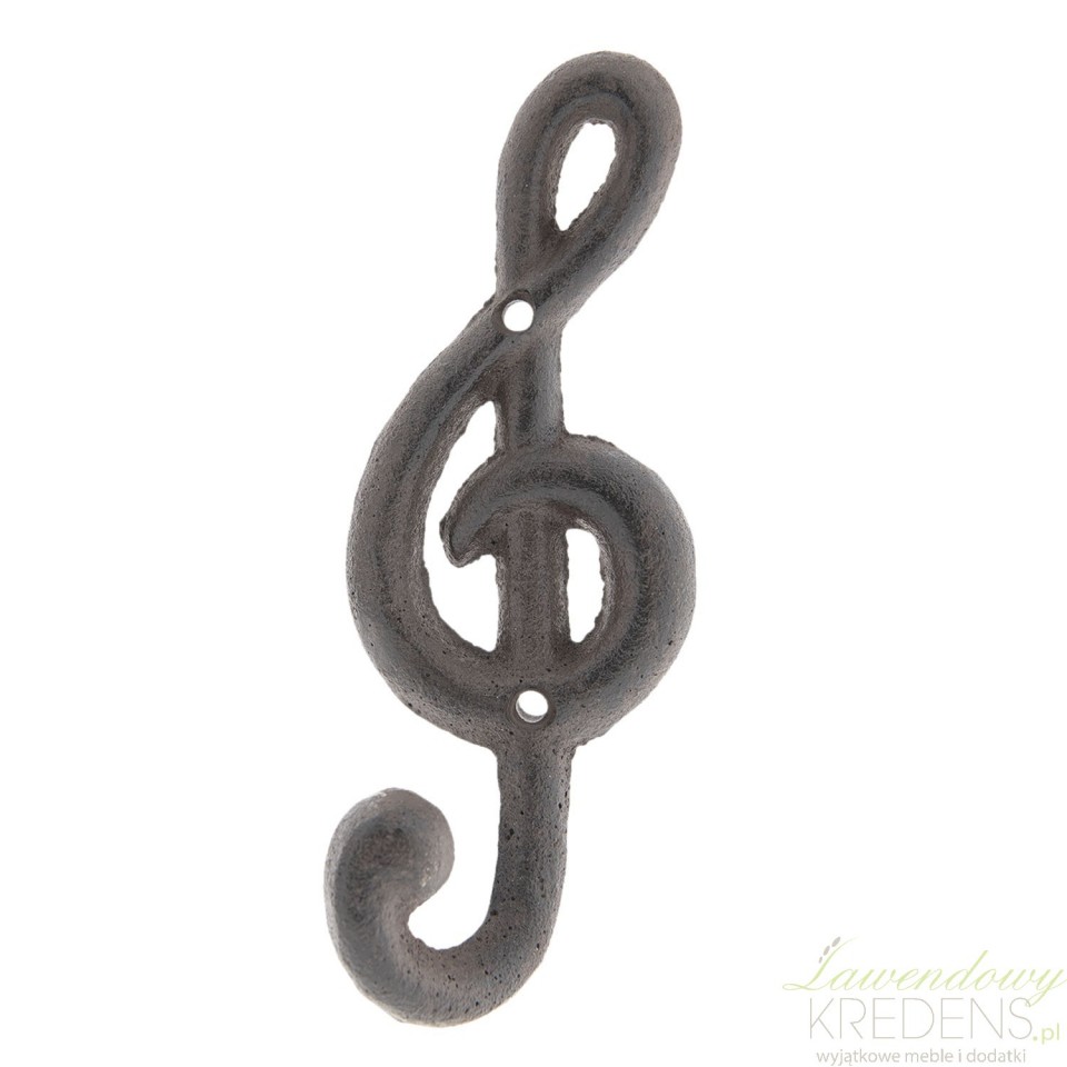 Wieszak ozdobny w kształcie klucza wiolinowego przeznacz do łazienki lub do kuchni. W tych wnętrzach nigdy nie brak praktycznych dodatków.