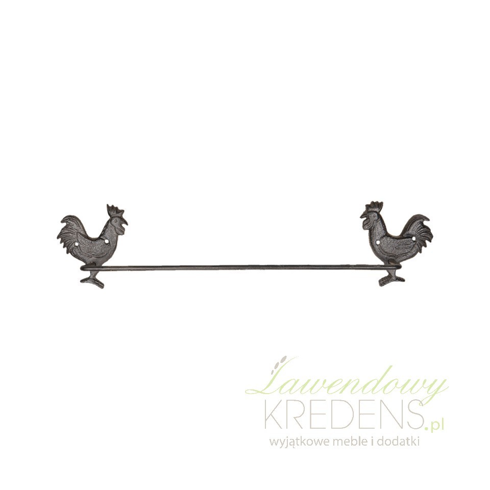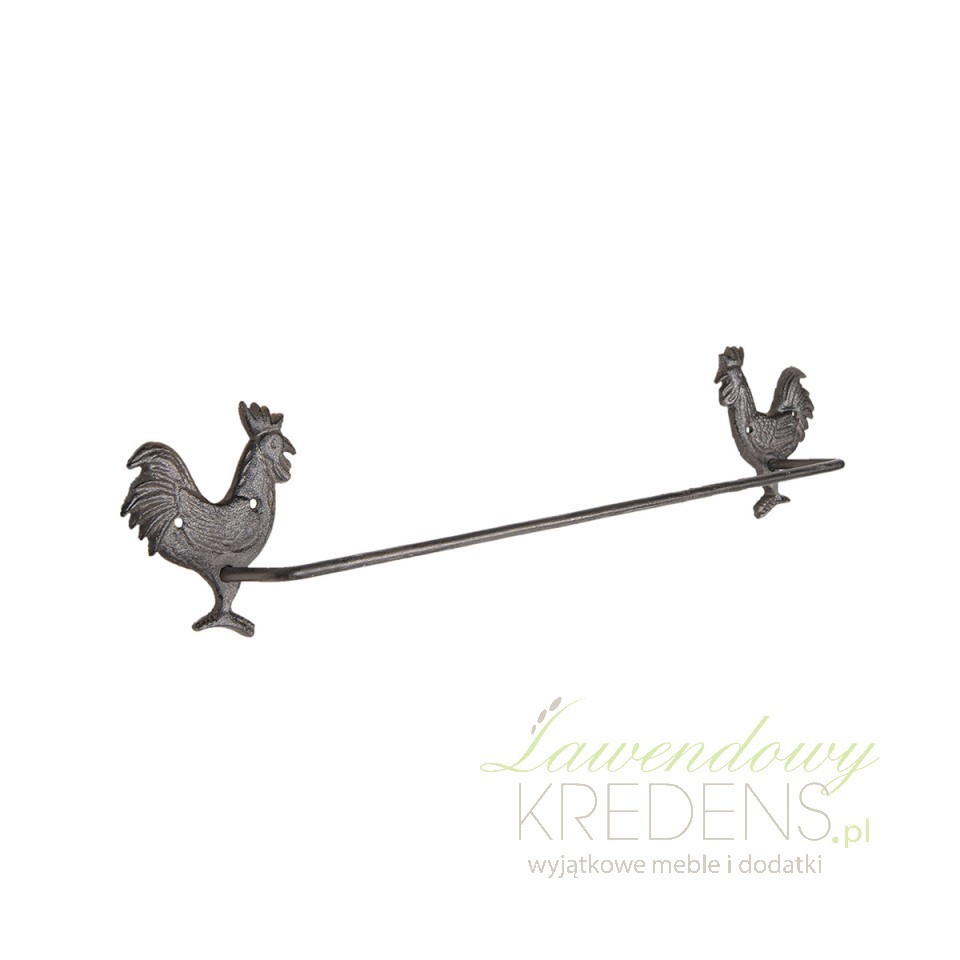 Wykonany z wysokiej jakości metalu wieszak prowansalski zdobiony kogutami wykorzystaj na ściereczki w kuchni lub na ręczniki w łazience.