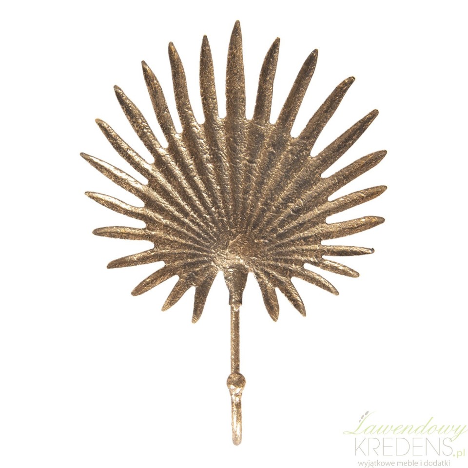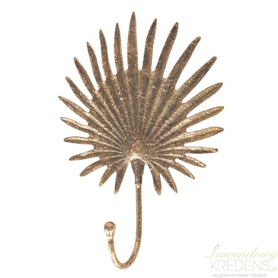 Wieszak ozdobny to niepowtarzalna dekoracja i jednocześnie praktyczny dodatek do aranżacji w każdym stylu. Sprawdzi się w kuchni i w łazience. Metalowy liść palmy w kolorze starego złota z pojedynczym haczykiem, to wyjątkowy gadżet dla tych, którzy lubią stylowe i praktyczne dodatki. Złote wieszaki ścienne stworzą świetną kompozycję wraz z innymi dodatkami w tym samym kolorze od Clayre&Eef lub z drewnianymi meblami.