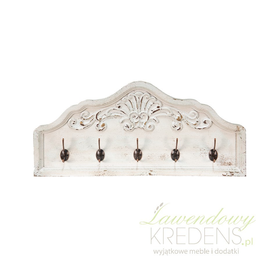 Przepięknie wykończone wieszaki ścienne prowansalskie są bardzo dekoracyjne. Na pięciu małych haczykach można zawiesić różne rzeczy - klucze, naszyjniki, smycze dla psów, ręczniki czy szaliki. Dzięki temu możesz zamocować je w dowolnym pomieszczeniu – na przykład w kuchni lub w łazience. Takie prowansalskie dekoracje wpłyną pozytywnie na charakter każdego pomieszczenia, odnajdą się w aranżacjach vintage, francuskich i wiejskich. A Ty jaki masz pomysł na ich zaaranżowanie?