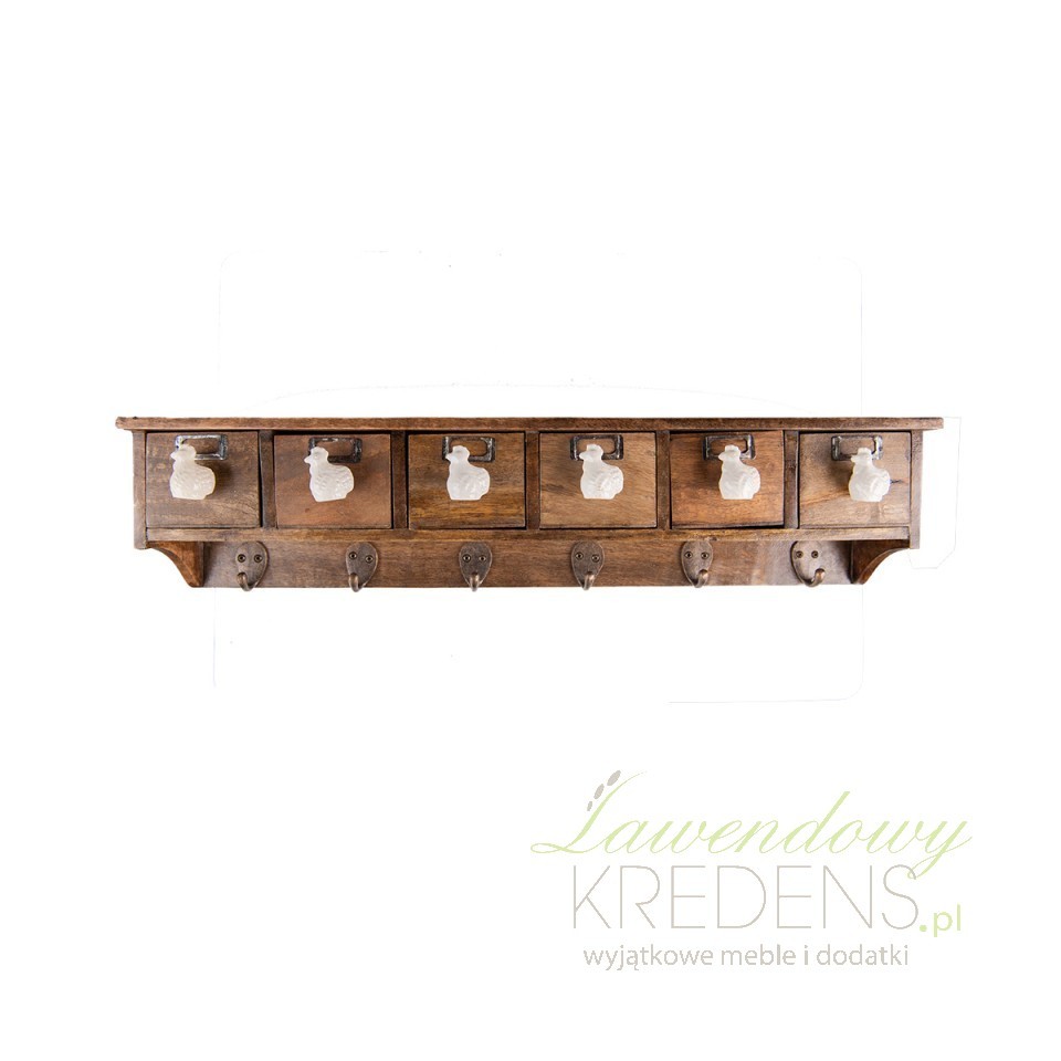 Wieszaki ścienne prowansalskie z szufladkami z drewna mango wykonane są w stonowanych kolorach, dzięki czemu z łatwością dopasujesz je do wielu pomieszczeń. Aby udekorować swoje wnętrze ze smakiem, musisz odkryć wszystkie funkcje jakie posiada ten brązowy mebel. Przechowywanie, segregowanie, porządkowanie i eksponowanie nie będą już dla Ciebie problemem. W szufladkach z białymi gałkami w kształcie zwierząt zmieści się naprawdę wiele. Prawdopodobnie ma nic lepszego niż stylowa półka od Clayre & Eef, aby uzyskać niepowtarzalny wystrój.