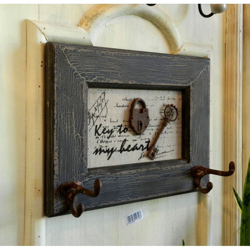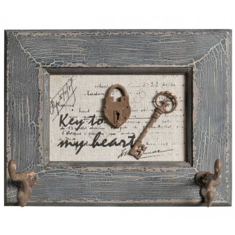 Wieszak retro Belldeco to wyjątkowe połączenie funkcjonalności wieszaka z niebanalnie wyglądającym obrazkiem. Wieszaki, bowiem przyczepione są do obrazka w ramce o wiekowym wyglądzie. W środku ramki znajduje się kłódeczka, kluczyk oraz optymistyczny napis, wykonany ciekawą czcionką.