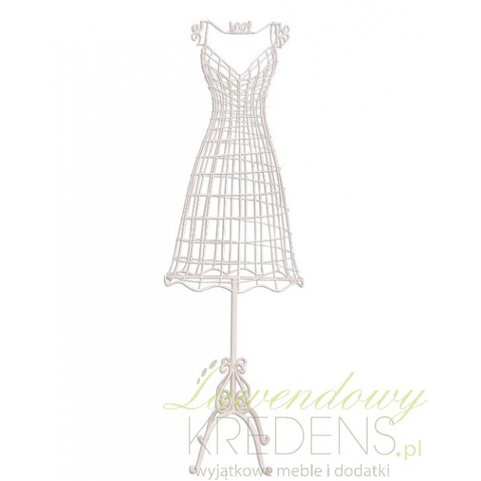 Biały manekin ozdobny wykonano w stylu prowansalskim nadając mu kształt pięknej sukienki z koroną. Produkt wykonano z metalu. Główną część przedmiotu ustawiono na stojaku ozdobionym esownicami o miękkiej linii. Dodatki prowansalskie - polecamy|