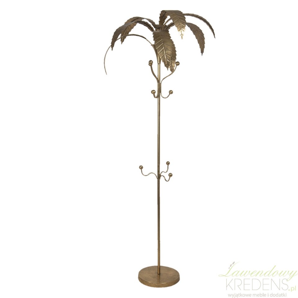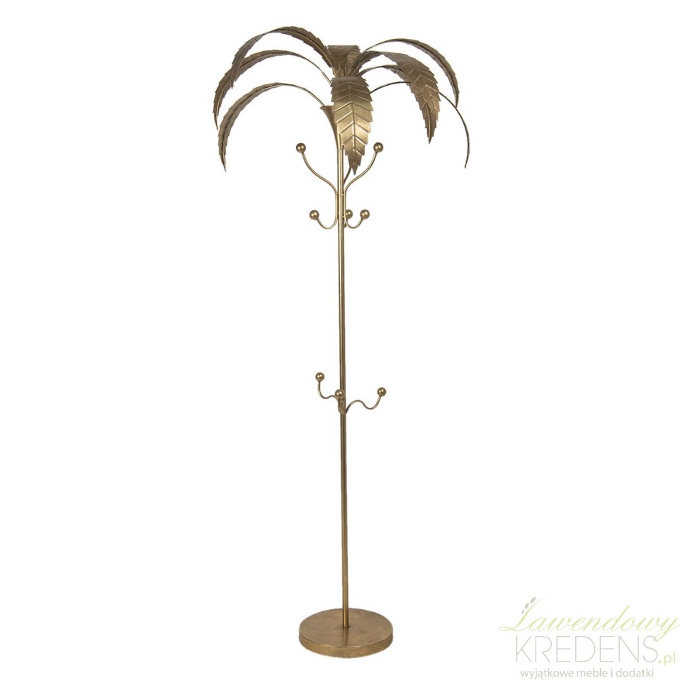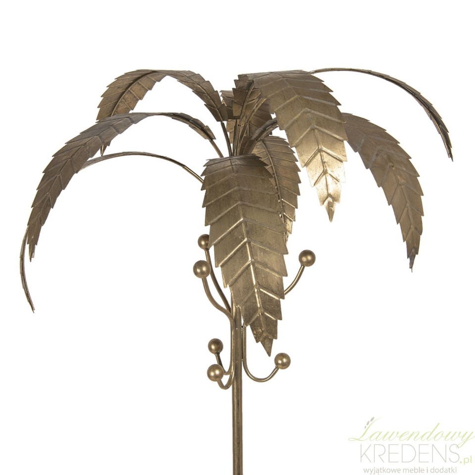 Elegancki wieszak na ubrania w kształcie przypominającym egzotyczną palmę doskonale pasuje do wnętrz glamour i nowoczesnych przestrzeni. Praktyczny, wyposażony w dziewięć haczyków zakończonych kulką będzie zapobiegał wyciąganiu się odzieży, co często powodują zwykłe wieszaki. Wieszak podłogowy, którego najatrakcyjniejszą część stanowią dekroacyjne liście w górnej części, ustawiony w przedpokoju powita Twoich gości w wielkim stylu!