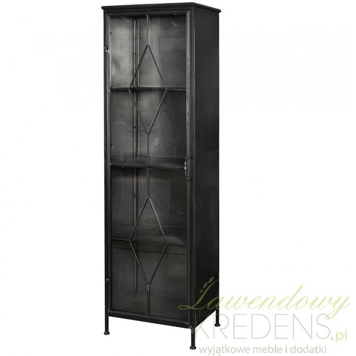 Stojąca witryna Belldeco w loftowym stylu wykonana z metalu w czarnym kolorze o lekko zmatowionej powierzchni.