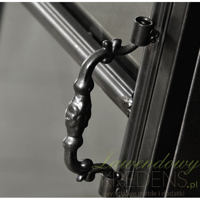 Witryna Belldeco to model o prostym kształcie, z dekoracyjnymi drzwiami i rzeźbionym uchwytem. Przeszklone drzwi komody odkrywają przed wszystkimi swoje wnętrze, w którym na trzech półkach zmieścisz nie jedną kolekcję porcelany lub zbiór książek. Znakiem rozpoznawczym czarnej witryny są ozdobne, metalowe okucia wykonane na drzwiach. Meble w stylu loft od Belldeco to gwarancja solidnego mebla na długie lata.