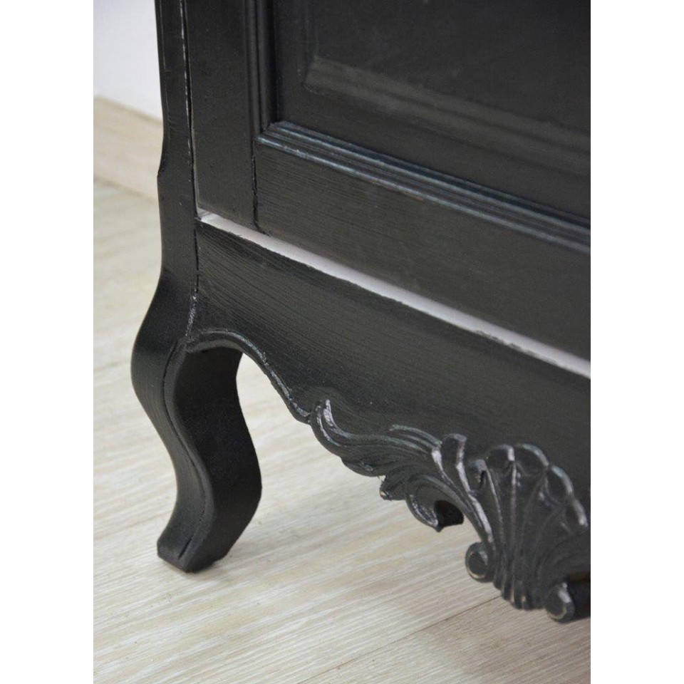 Dzięki delikatnie zaokrąglonym, klasycznym liniom, witryna Sorrento w stylu prowansalskim czarna pasuje do niemal każdego pomieszczenia. Występuje w kilku różnych konfiguracjach, dzięki czemu możesz wybrać mebel, który najlepiej pasuje do Twojej przestrzeni. Przeszklone, eleganckie drzwi otworzysz delikatnie za pomocą dwóch metalowych, rzeźbionych uchwytów. Postaw na czarne meble prowansalskie i uczyń swój dom wyjątkowym miejscem dla całej rodziny!