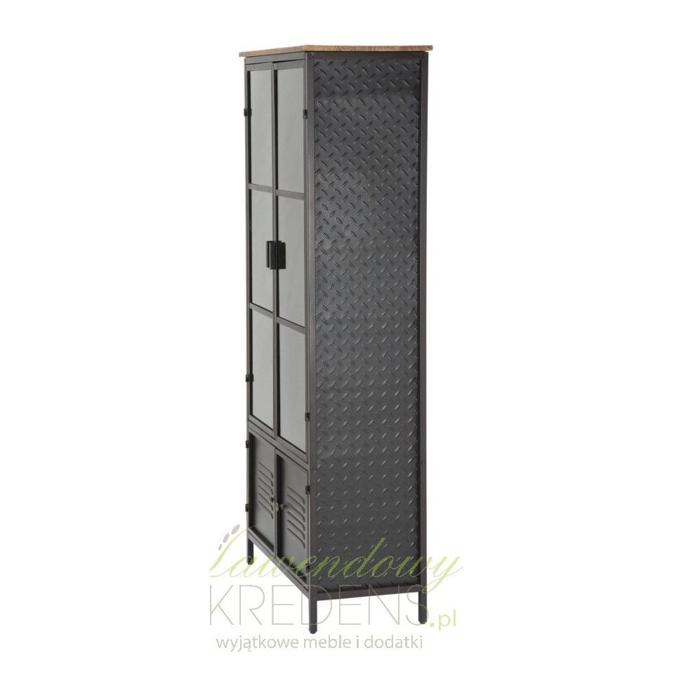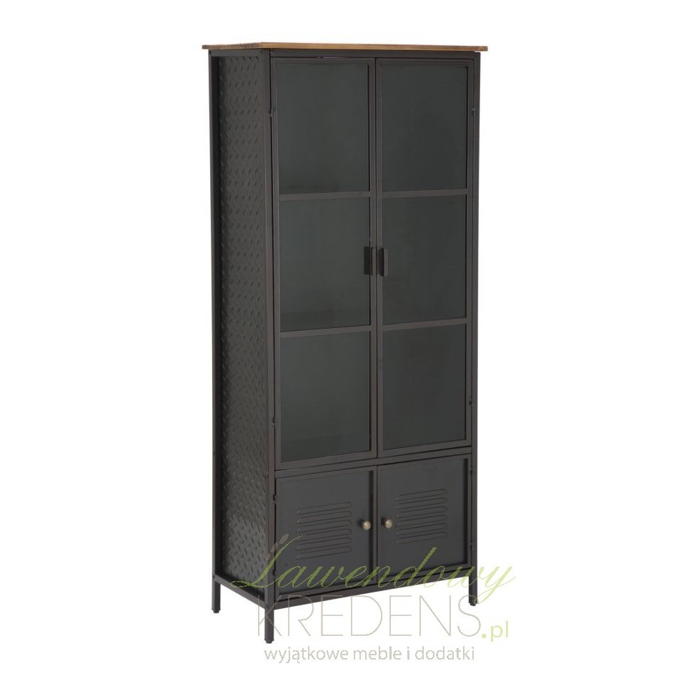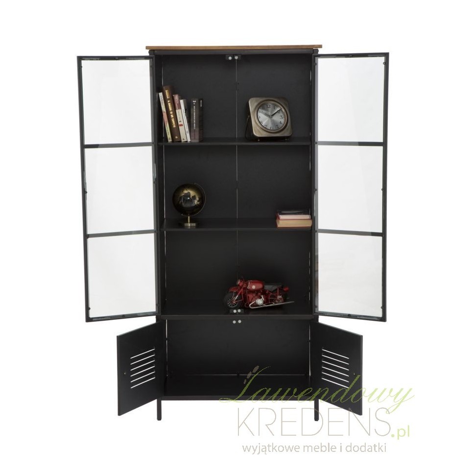 Czarna witryna industrialna z metalu posiada podwójne, szklane drzwi. Wewnątrz znajdują się liczne półki, na których możesz umieścić różnego rodzaju przedmioty, w zależności od tego w jakim wnętrzu zdecydujesz się ustawić ten wielozadaniowy mebel. Meble industrialne od Mauro Ferretti to jedyne takie rozwiązania aranżacyjne, które genialnie łączą funkcjonalność ze stylowym efektem wizualnym. Witryny w stylu industrialnym z kolekcji School to proste, a zarazem bardzo oryginalne meble do rozmaitych pomieszczeń.
