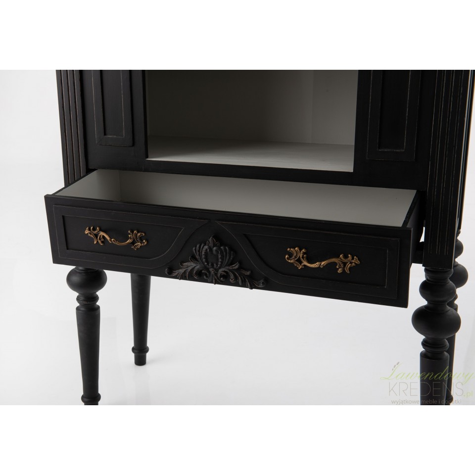 Czarna witryna w stylu prowansalskim to mebel elegancki, pełen klasy i francuskiego designu.